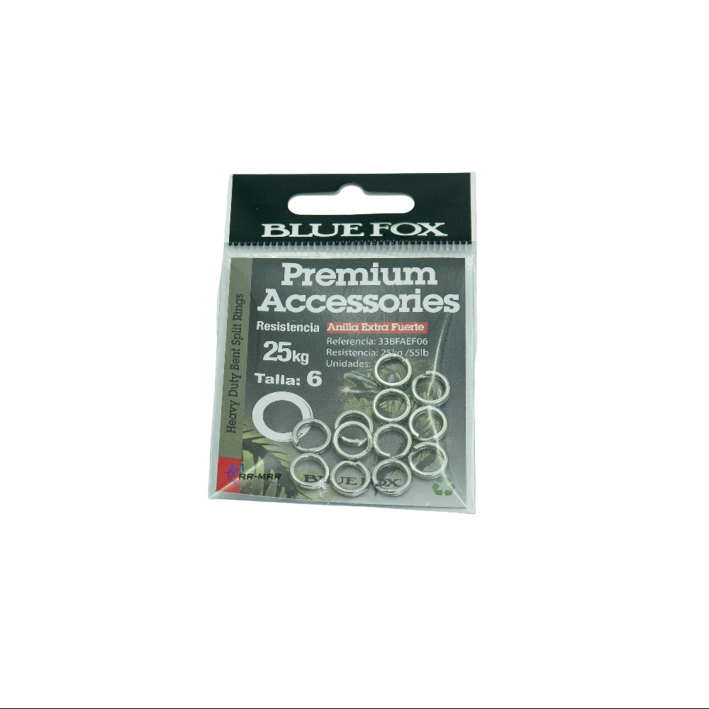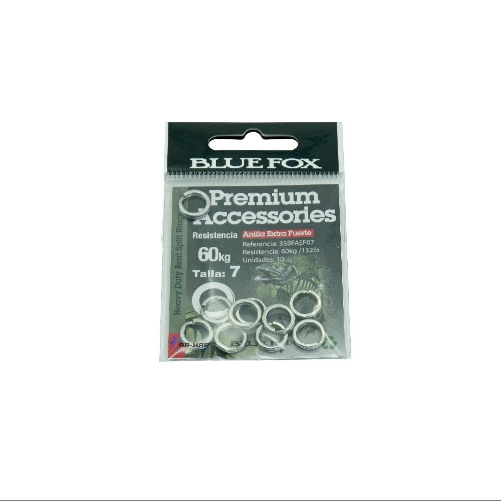 Las argollas Blue Fox son accesorios de pesca resistentes, diseñadas para soportar cargas de 20 kg hasta 70 kg segun el modelo. Fabricadas con acero de alta calidad, ofrecen máxima seguridad en montajes de señuelos, líderes y terminales, asegurando un rendimiento confiable en cada jornada. Elige tu modelo de acuerdo a la resistencia deseada.