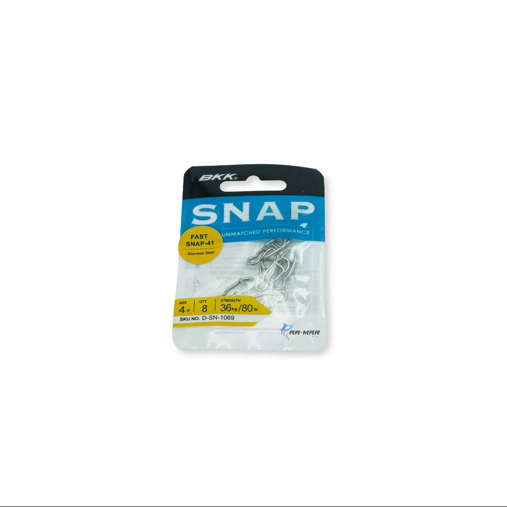 Los BKK Fast Snap-41 están diseñados para pescadores que buscan máxima rapidez en el cambio de señuelos sin perder resistencia. Su forma en “8” permite enganchar y liberar artificiales en segundos, garantizando un montaje firme y seguro. Fabricados en acero de alta calidad con acabado anticorrosivo, son ideales para pesca de agua salada y dulce.