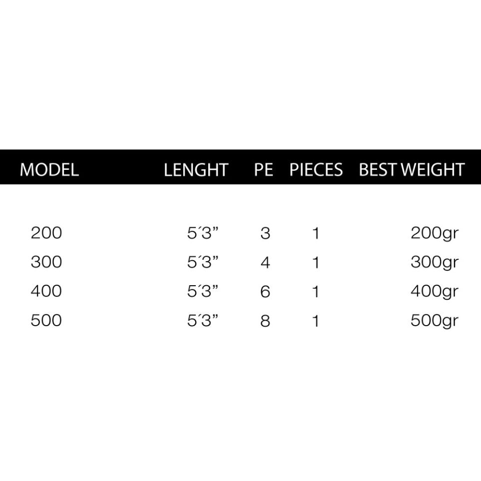 Caña de jigging rápido, 5’3″, acción parabólica media‑rápida, excelente reserva de potencia y ligereza gracias a su blank Toray T1K, ideal para combates prolongados.