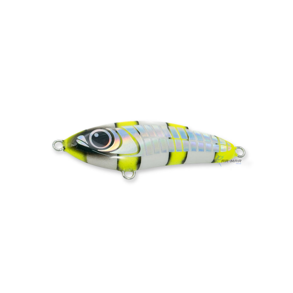 El Señuelo Chuky de 11 cm y 2 oz es una obra artesanal hecha para la pesca superficial. Cada pieza es pintada a mano, cuidando cada detalle para lograr un señuelo con excelente acción tipo stickbait y acabados únicos. Ideal para pescadores que valoran la calidad y el arte en cada lance, perfecto para targeting de robalos, jureles y más.