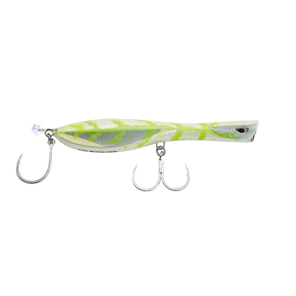 El Dartwing 165 mm White Glow de Nomad Design es un señuelo de superficie innovador diseñado para provocar ataques agresivos. Su forma única de ala le permite deslizarse de lado a lado imitando el movimiento errático de un pez herido, ideal para especies depredadoras en aguas saladas.