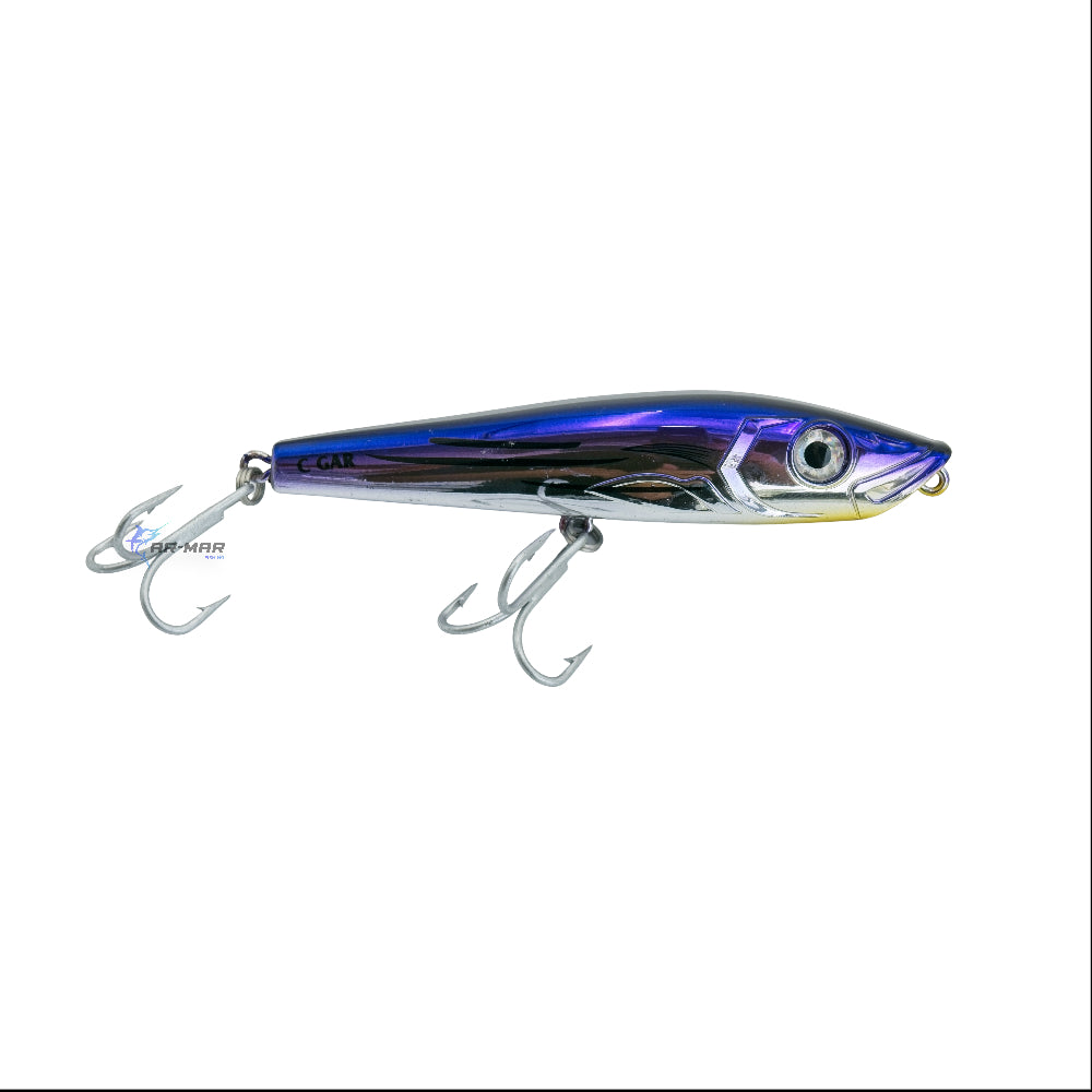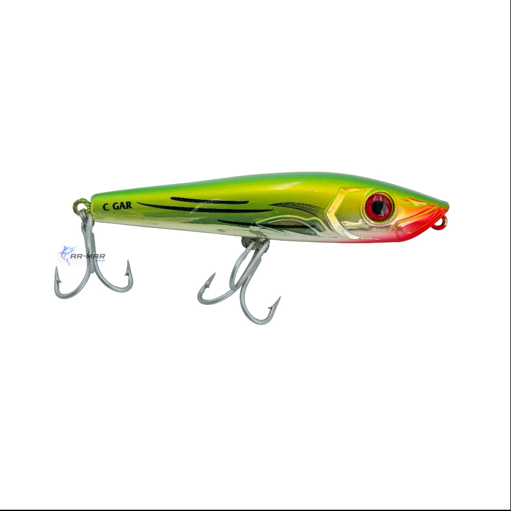 El Halco C-Gar 120 (1 ½ oz) es un señuelo híbrido de superficie y hundimiento lento (sub-surface stickbait) diseñado para lances extremos desde la orilla o embarcación. Su cuerpo compacto y aerodinámico permite alcanzar largas distancias incluso contra el viento, mientras que su movimiento zigzagueante imita un pez presa herido, irresistible para depredadores costeros y pelágicos. Resistente y versátil, puede trabajarse tanto en superficie como justo bajo la misma, siendo ideal para escenarios con fuerte oleaje o corrientes.