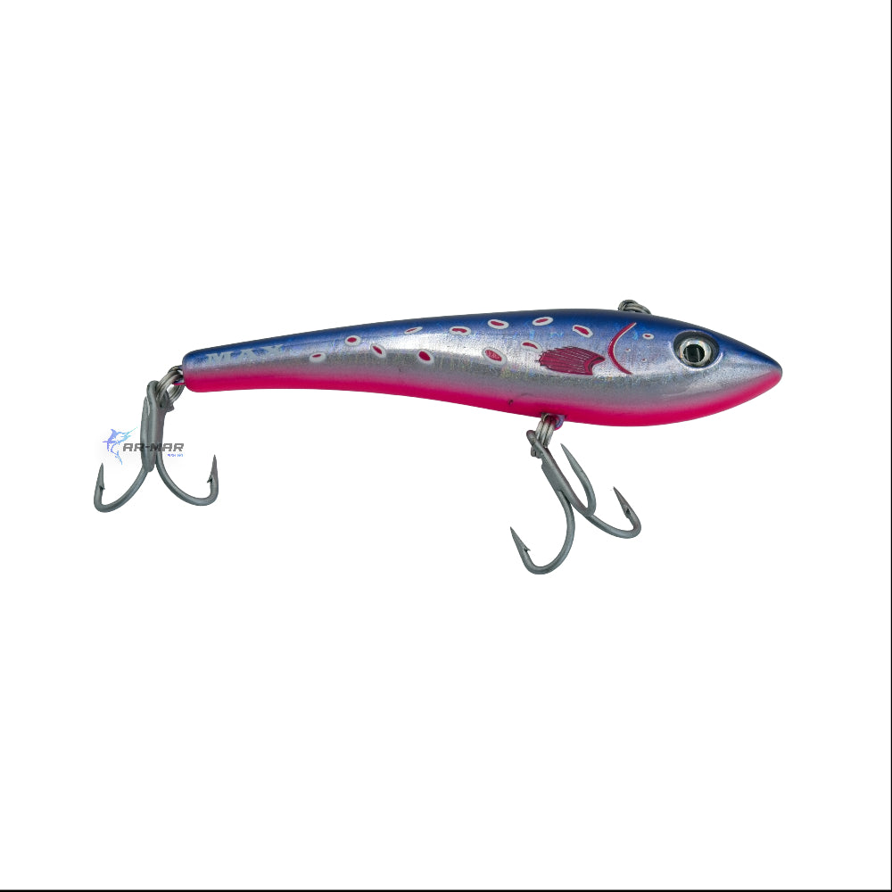 El Halco Max 130 (2 ¾ oz) es un stickbait de hundimiento rápido diseñado para recuperaciones a alta velocidad y lances ultra largos. Su perfil aerodinámico y peso balanceado le permiten cortar el viento con facilidad, manteniendo una acción estable incluso en condiciones de oleaje fuerte. Es ideal para spinning desde orilla o embarcación, así como para trolling ligero, siendo un señuelo confiable para especies pelágicas de gran potencia.